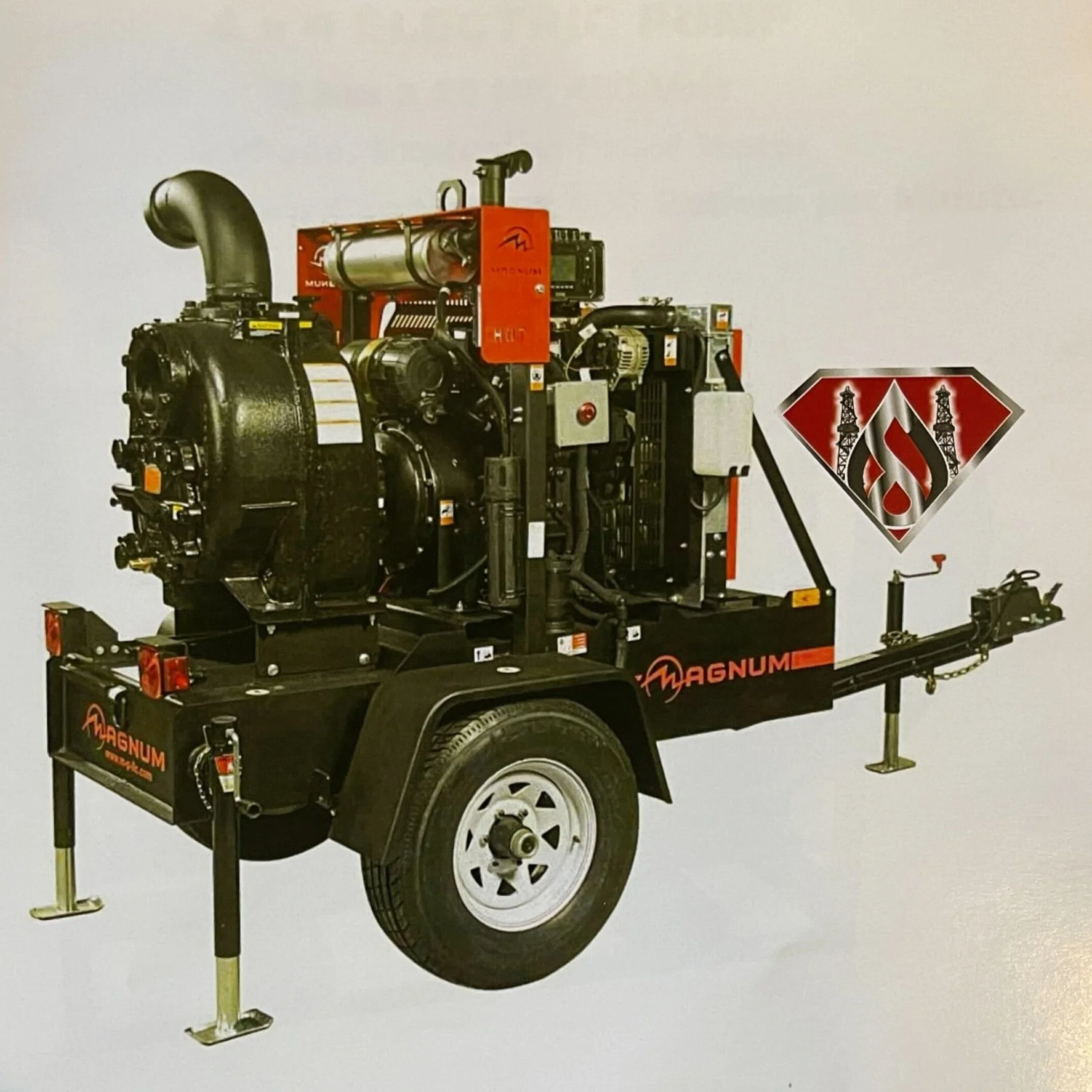 3 Cylinder Motor and a Pump Flow Capacity of 900 Gallons Per Minute with a Max Head of 120 Ft. Used to Transfer Water and Mud.